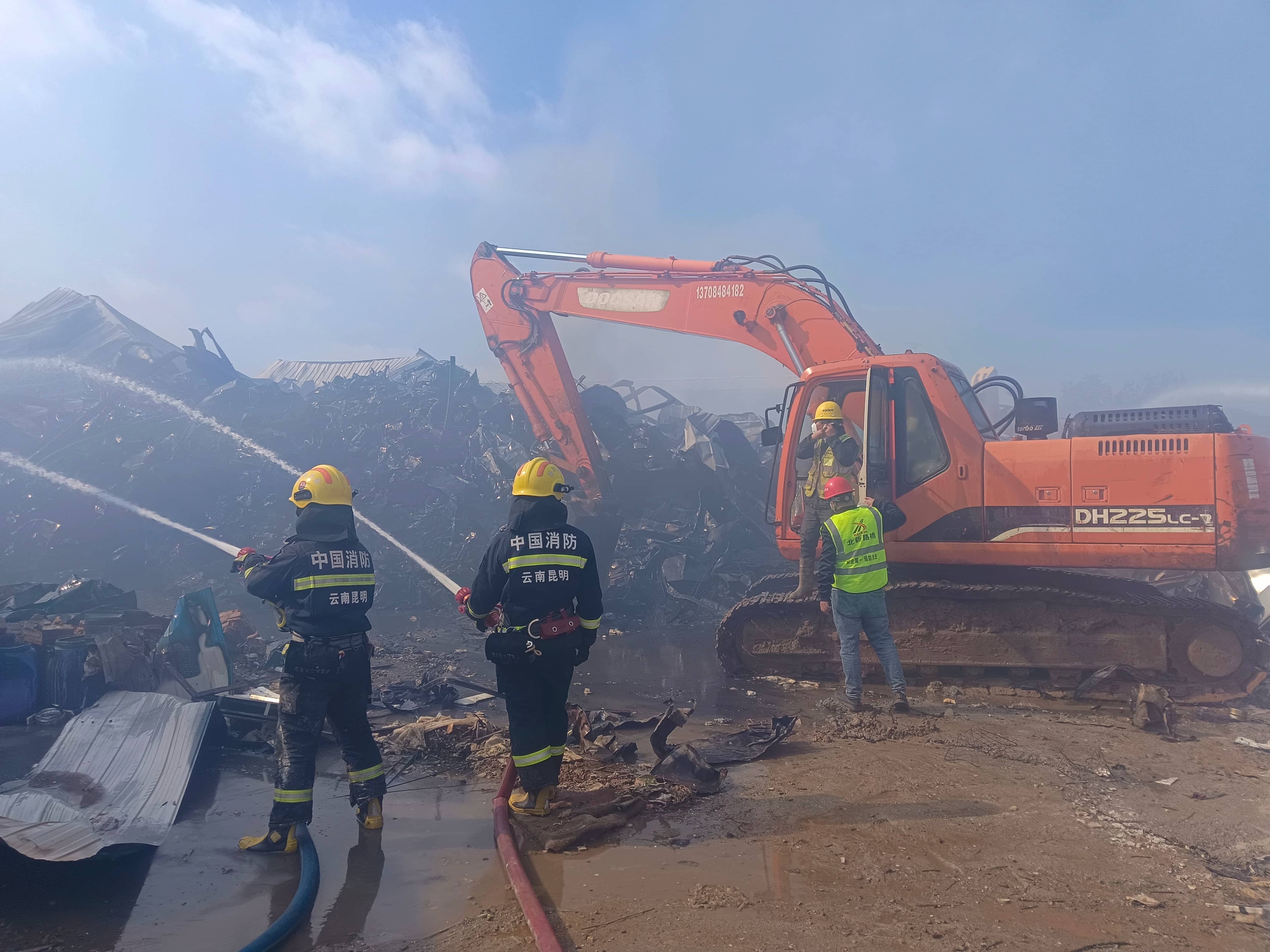 火情就是命令,救援刻不容缓。邻近现场的云南长龙高速公路项目总承包部高度重视,第一时间启动应急联动预案,迅速组建党员突击队赶赴现场投身救援。在严格遵守安全规程、全力配合专业消防救援力量的前提下,突击队科学分工、协同作战:副总经理兼工区负责人刘金龙坐镇现场统筹指挥,精准研判火势动态,高效协调人员与机械;副工区长张二恒带领机械组操作两台大型挖掘机,严格听从消防救援指令,快速开辟防火隔离带、清理救援通道,为扑救工作抢占了宝贵时间;安全员王战利、戚年生迅速划定并设立警戒区,有序引导车辆进出,同步巡查周边风险点位,严防次生灾害发生;项目现场水车也火速抵达火场外围,持续为消防部门供水,提供了关键的水源支援。救援过程中,总承包部工程管理部谭杰、龙俊辰发现现场部分工作人员缺乏防护用品,立即主动将项目储备的 N95 口罩等应急物资送达指定地点,为现场人员筑牢健康防护屏障,彰显了细致入微的关怀。